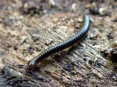 枯れ木の皮の下で発見,などからクロヒメヤスデが第一候補だと思いますが,付属肢や単眼の様子など詳細に調べなければ正確な同定はできないようです。