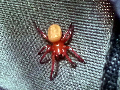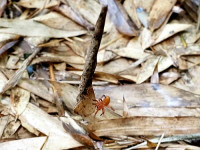 背甲は赤褐色,腹部上面は暗赤褐色ということですが,この写真では腹部は黄褐色ですね。まだ幼体でしょうか?