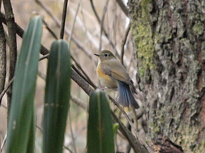 左の写真は雌だと思われます。雄では名前の通り体の上面が,るり色をしているそうです。雌は写真のようにオリーブ色をしていますが尾は青色です。