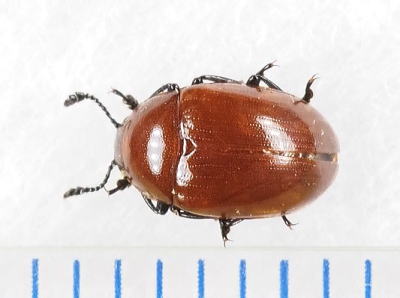 橙赤色〜赤褐色で,頭楯・口器・触角・肢は黒い。