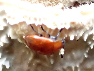 カワラタケ・カイガラタケなどのキノコに集まります。5月頃から現れるが秋にも出現するということです。今回もカワラタケに似たキノコについていました。