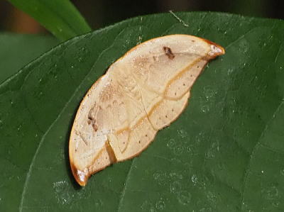 前翅端がかぎのように曲がっており,その部分が褐色。
