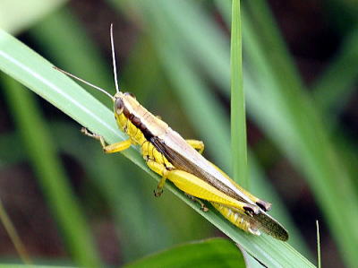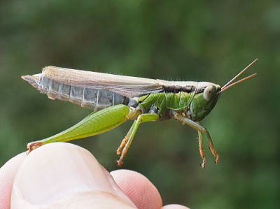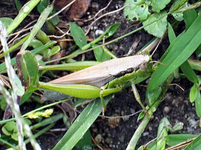 体長雄16〜34mm、雌18〜40mm。 上記のハネナガイナゴとよく似ていますが,横からの写真を見比べると,翅の長さが明らかに短いことがわかります。 ハネナガイナゴ同様,イネ科植物が主食ですが,こちらの方がより広食性でシュロ, スギナ,ショウブ,オオバコ,チドメグサ,クズ,シロツメクサ,ハコベ,ツユクサ,カタバミなど(他にも多種類)の植物を食べることが確認されています。 北海道から九州まで分布し、広島県では広い範囲に生息しています。 ハネナガイナゴに比べ,水田以外の場所でもで見ることができます。 写真いずれも2019/10/19高浦 |
