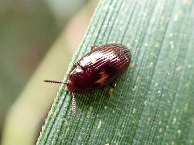 キノコや朽木に集まるということですが,今回は笹の葉の上にいるのを見つけました。