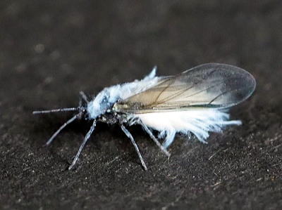 体長約5mm。全身に白い毛(実はワックスだそうです)が生えたアブラムシ。白くて粉雪のようにふわふわ飛ぶことから雪虫とも呼ばれます。 北海道では,「雪虫が飛ぶと近いうちに初雪が降る」というらしいですが,その雪虫はトドノネオオワタムシというトドマツに寄生する種なのだそうです。広島県にはトドマツはないので,別種だろうと思い探したところ,広島県に普通にあるケヤキに寄生するケヤキフシアブラムシという種がいることがわかり,多分それだろうと判断しました。 幼虫は春,ケヤキの葉に虫コブを作って潜み,夏になると羽が生えた成虫が出現するそうです。そしてその虫は笹に移り,笹から汁を吸って無性的に増えます。 さて,近いうちに初雪が降るでしょうか? 写真はいずれも 2019/12/10高浦 |