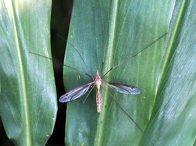 体長14〜18mm。 上のクロキリウジガガンボと似ていますが,腹部の背面が橙色になっているところが違いますね。 こちらが稲の大害虫になる種のようです。 自宅庭にいたのですが,近くの田んぼから飛んできたのでしょう。 写真はいずれも2025/09/27高浦 |