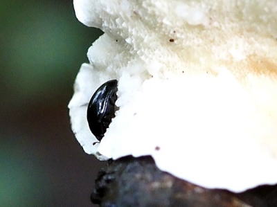 によく似ていて,こちらもキノコを食べています。今回はカワラタケのような(種名不明)キノコの裏にいました。