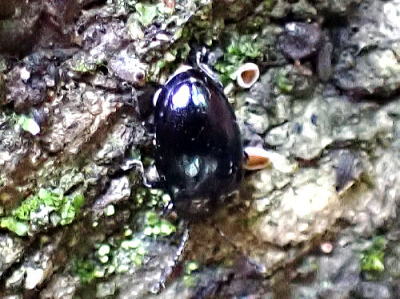 枯木,倒木,キノコなどにきわめて普通ということです。今回も枯木の表面で微小なキノコなどが多く生えているところにいました。
