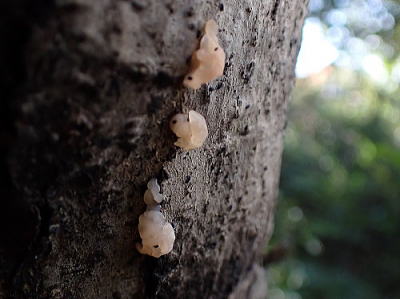 通常ゼラチン質で径10cm,高さ5cmくらいまで成長するようですが,今回見つけたのは径4cmほどが最大でした。