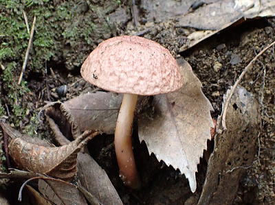 傘は径5〜11.5cm,薄い赤褐色で表面がデコボコしています。