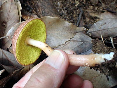 管孔は黄色ですが,やがて緑黄色に変わります。変色性はありません。
