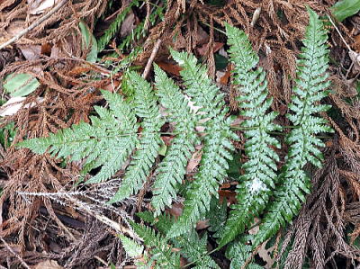 小羽片が波打っているのが特徴です。また,羽片の柄はほとんどなく,くっついて見えます。