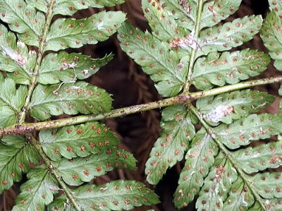 葉柄の鱗片は最基部では褐色ですが,そこから上は黒褐色になります。