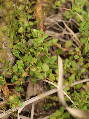 小さな花をアリに、草全体を蟻の塔(アリ塚)に見立てたものだそうです。 日当たりがよく、やや湿ったところに生える10〜30cmの多年草。 瀬戸町では一番組に生えているのを見つけました。 葉は、対生。長さ0.6〜1.2cm、幅0.4〜1cmの楕円形。 花は、茎の上に点々とつき、下向きに咲きます。雄しべ先熟で、4枚の反り返った花弁の下に8個の雄しべが下がります。(左下)やがて、おしべと花弁が落ちて、紅色で羽毛状のめしべが目立つようになります。(右下) 花期は7〜9月 写真はいずれも2009/07/24 一番組 |