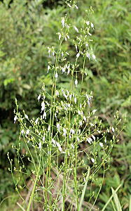 山野にごく普通に見られる高さ0.4〜1mになる多年草。 瀬戸町内では志田原や猪之子の山際にある溜め池の土手などに見られます。 茎を切ると乳液が出ます。 根生葉は長い柄があり円心形で花時には枯れます。茎葉は3〜4枚輪生することが多いのですが、まれに対生や互生もあります。 茎頂に円錐形の花序を出し、1〜数個の花が輪生してやや下向きにつきます。釣り鐘形の花冠は淡紫色で長さ1.5〜2cm、先は5裂してやや広がっています。 花期8〜11月 写真1段目2009/08/23、 2,3段目左(根生葉)2010/11/03 3段目右(茎葉)2008/08/12 いずれも志田原 |