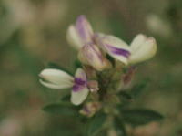 茎は高さ0.6〜1mになり、やや木質化し、伏毛がある。葉は3小葉からなり、茎に密生します。小葉は長さ1〜2.5cm、幅2〜4mmのくさび形。