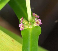 北アメリカ原産で高さ50〜80cmまでなる1年草。通常は30cm程度が多いようです。 瀬戸町では田んぼの雑草としてよく見かけます。 在来のヒメミソハギという植物もあるらしいのですが、瀬戸町ではまだ確認していません。 見分け方は、花の直径が本種では約4mmありますが、ヒメミソハギは1.5mm程しかないこと。また、葉の形が本種では矛のような形ですが、ヒメミソハギでは広線形で基部が茎を抱くことなどだそうです。 花期6〜10月 写真は上2008/09/27 左下2009/10/12 右下2008/08/24 いずれも高浦 |