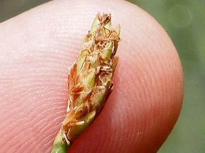 小穂(中段)は長さ1cm程度のは長楕円状卵形。鱗片の先端は鈍頭〜やや鋭頭。