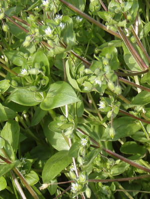 コハコベ ハコベと同じような所に生えていて、また、よく似てもいますが、全体にやや小型で茎が暗紫色を帯びています。 雌しべが3本はハコベと同じですが、雄しべの数は1〜7本のものが多いそうです。 花期3〜9月 写真はいずれも2008/04/04高浦 |