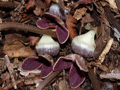 山地の林内に生える常緑の多年草。 瀬戸町では、一番組の湿った林内で確認しました。似た種にサンヨウアオイがありますが、実はまだ、区別がはっきりしません。ミヤコアオイであれば、環境省のレッドデータブックに載せられる希少種です。決して採取はしないでください。 サンヨウアオイでは萼筒の外面に6列の膨出部があるとされますが、瀬戸町のものにはそれが確認されませんし、萼筒の中の隆起線が網目状になっている(サンヨウアオイは横の線が著しくない)のでミヤコアオイとしました。 花期は広島県ではミヤコアオイが2〜3月、サンヨウアオイが4月だそうです。 写真はいずれも 2011/03/13一番組 |