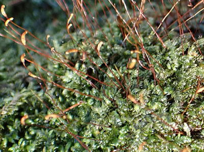 木漏れ日が射すような渓谷などの木の根元や腐植土上,岩上に生えるコケで,葉が鏡のようにキラキラしているのでこの名があります。 茎は匍い,やや羽状に枝を水平に出します。枝は葉を含めた幅が1〜1.5mm。 枝葉は長さ1.2〜1.5mm。狭い卵形で先は細く尖り,上半の葉縁には鋭い歯が並びます。中肋はないか,あっても非常に短いそうです。 葉身細胞は線形で,幅は4〜5μm程度。翼部には3〜4個の黄色い大型の細胞が一列に並んでいます。 剳ソは長さ1.5〜2.5cmで平滑。朔は傾いてつき,非対称です。 写真は 一段目2025/12/29彦山 |