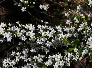 高さ1〜2mの落葉低木。 川岸の岸壁の割れ目や岩がごろごろしているような所,大雨で増水すると水没するような所に生えるとありますが,私たちが実際に目にするのは,庭木として植えられたものが多いと思います。 瀬戸町の川岸に生えているものが本来の自生なのか,それとも庭木が逃げ出したものかはわかりませんが,瀬戸町内の川で結構見かけます。 花は3月末〜4月,前年の枝にびっしりと白い梅の花を小形にしたような花をつけます。その様が雪のようで,葉がヤナギの葉に似ているとして名前がついたものだと思われます。 写真はいずれも2011/03/27志田原 |