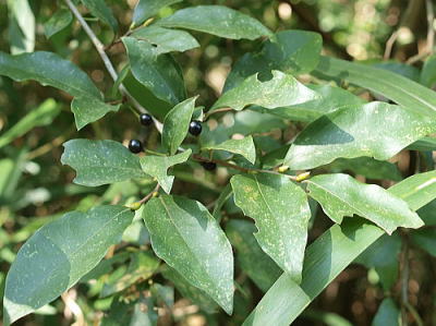 山地に生え,高さ3〜5mになる落葉高木。 瀬戸町では,一番組と彦山で確認していますが,探せば,どこの山にもあるのではないかと思います。 葉は互生。長さ5〜10cm,幅2.5〜4cmの長楕円形〜楕円形で,鋸歯はありませんが少し波打っています。 この葉は,冬には枯れるんですが,すぐには落葉せず,翌年新しい葉が出るまで残ります。この,葉が落ちないというところから,受験のお守りになっているということです。 雌雄異株ですが,雌株しかないそうです。それなのに,ちゃんと実がなるんです。どうなっているんでしょう。 果実は7mmほどの球形で,10〜11月に黒く熟します。 写真は上2009一番組。 下は左右とも2011/12/12彦山 |